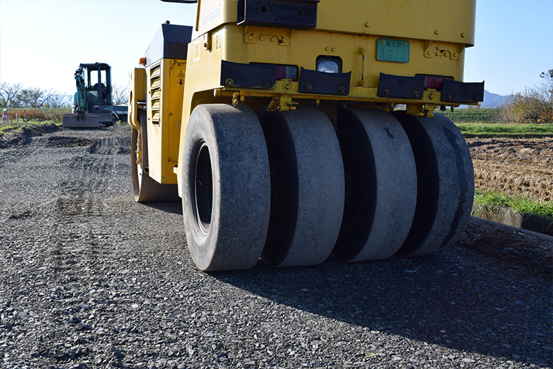 バックフォー・コンバインドローラー・アスファルトフィニッシャーなど舗装工事に必要な車両を完備し、自社一貫対応で高品質・スピーディーな施工を提供いたします。